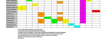 Le tableau reprend l'inventaire des zones, équipements et engins à entretenir sur la centrale ainsi que les noms des personnes désignées à cet effet. Ce tableau a été remis en version papier à chaque personne et est affiché aux valves dans la centrale.