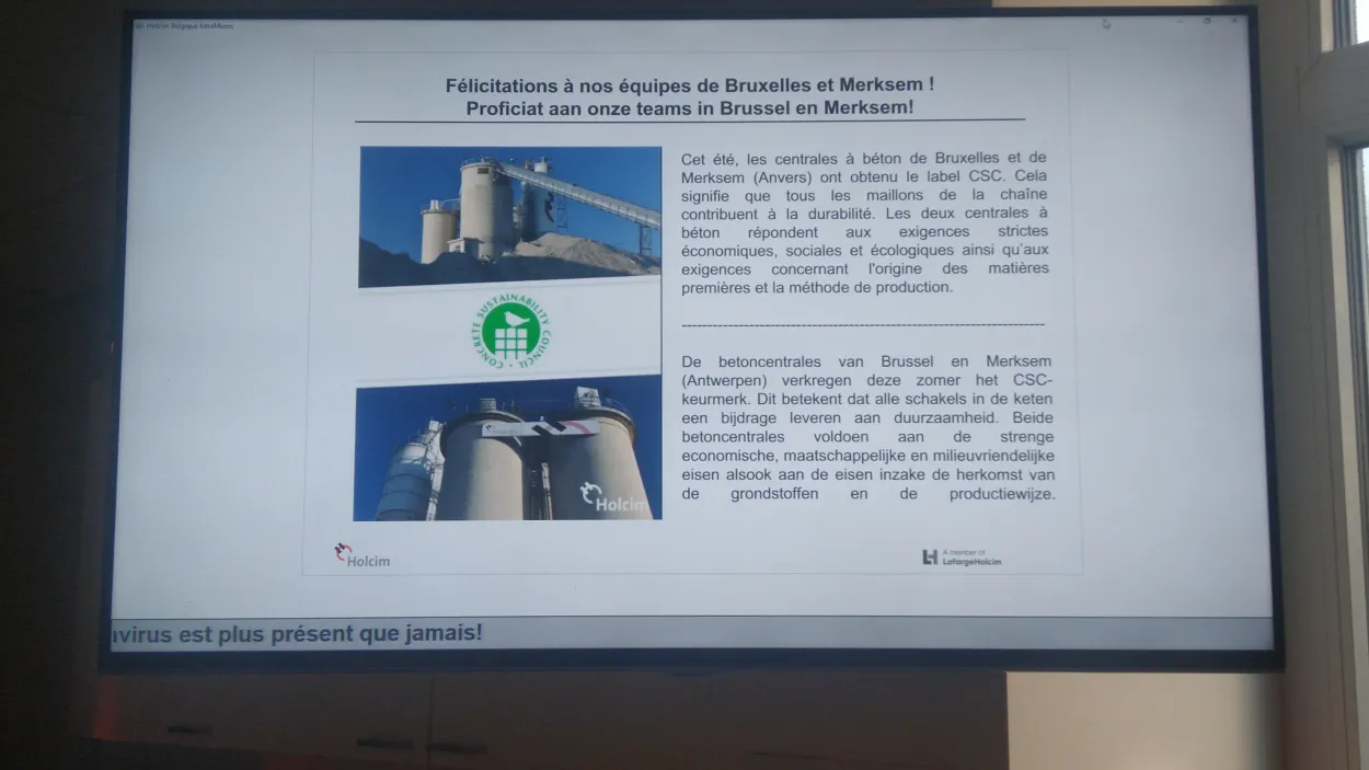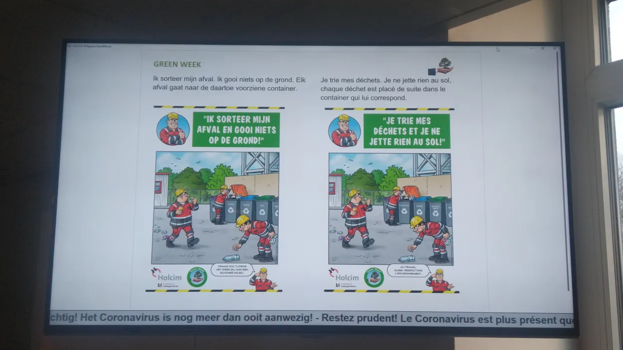 Sensibilisation digitale à l'Environnement et à la Santé et la Sécurité de tous nos personnels : exploitation de Whatsapp et de téléviseurs sur sites pour diffuser des affiches (type bande-dessinée) avec des thèmes pré-définis, une fois par semaine - programme de diffusion pré-défini sur les 20 prochaines semaines, à compléter par un quizz en ligne.