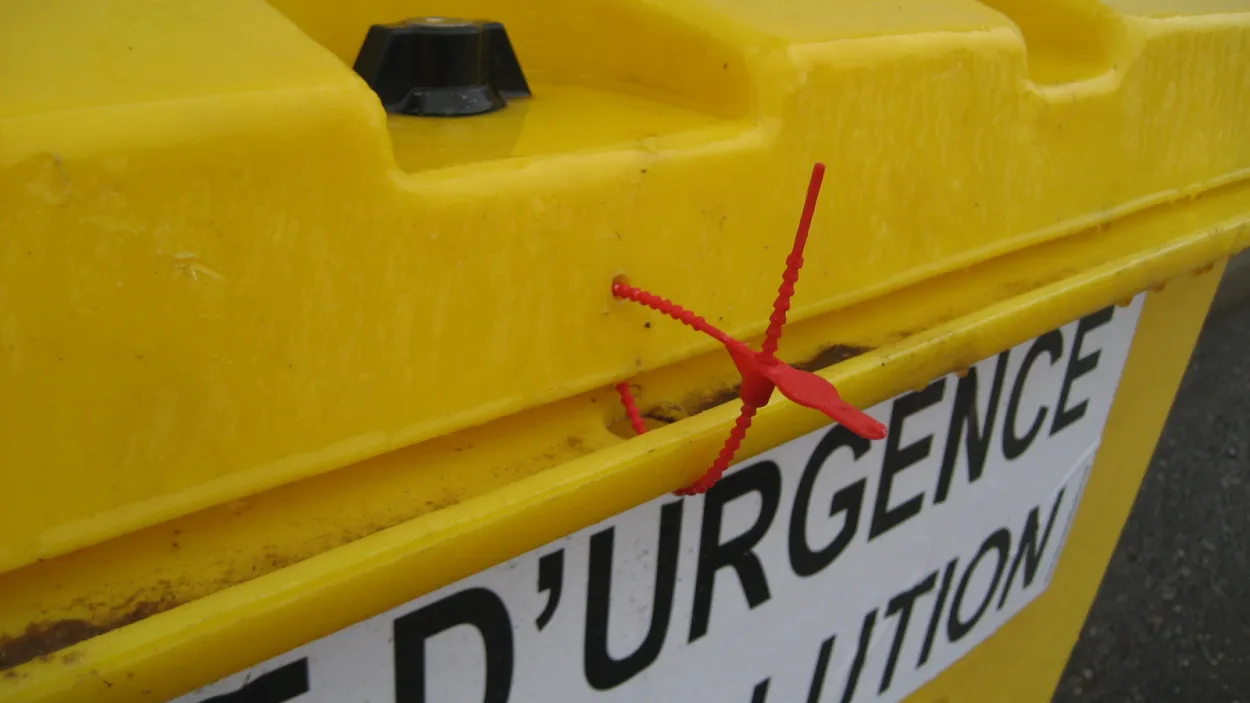 Een plastic Tyrap kabelbinder die men gemakkelijk kan breken is aanwezig op de deur van de kasten waarvan de inhoud gecontroleerd werd. Zolang de ketting niet verwijderd is, werd de inhoud van de kast niet gewijzigd. Dit vereenvoudigt de periodieke controles van de kasten voor brandweermateriaal. Hetzelfde principe wordt toegepast op de antivervuilingskits.